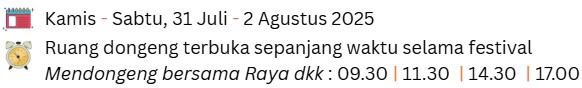 Di panggung festival, para siswa SD dan SMP akan bergantian menyampaikan dongeng , legenda, fabel yang menarik dan membawa pesan dari leluhur.